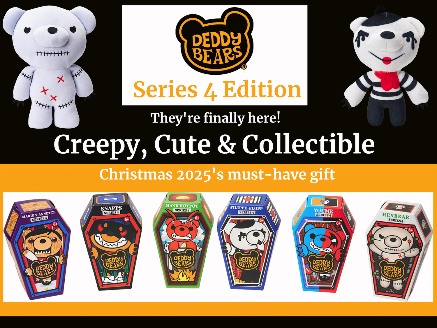 Series 4 introduces six new characters, each with their own quirky, slightly spooky charm. From eerie-eyed bears to adorably odd plushies, these toys encourage kids to embrace differences and dive into imaginative storytelling.